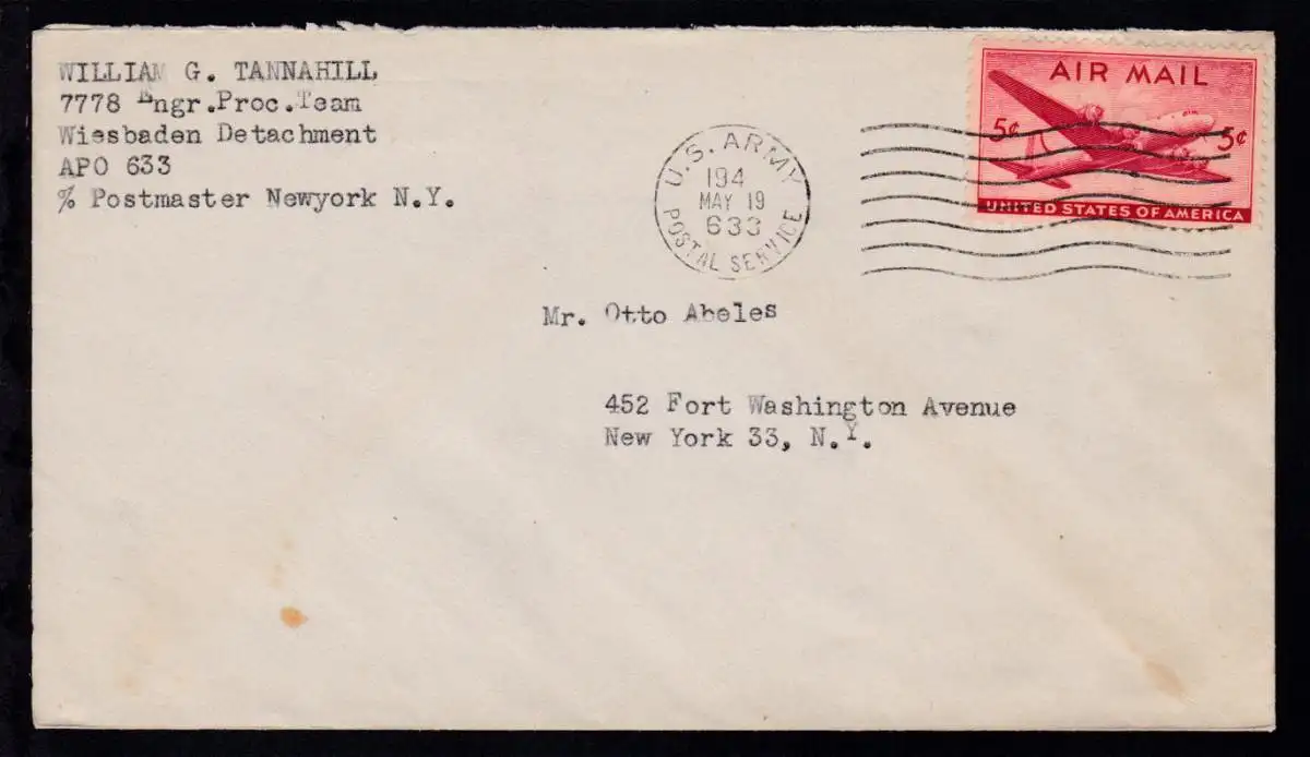 Maschinenstempel U.S. ARMY POSTAL SERVICE 633 MAY 19 194 auf Brief