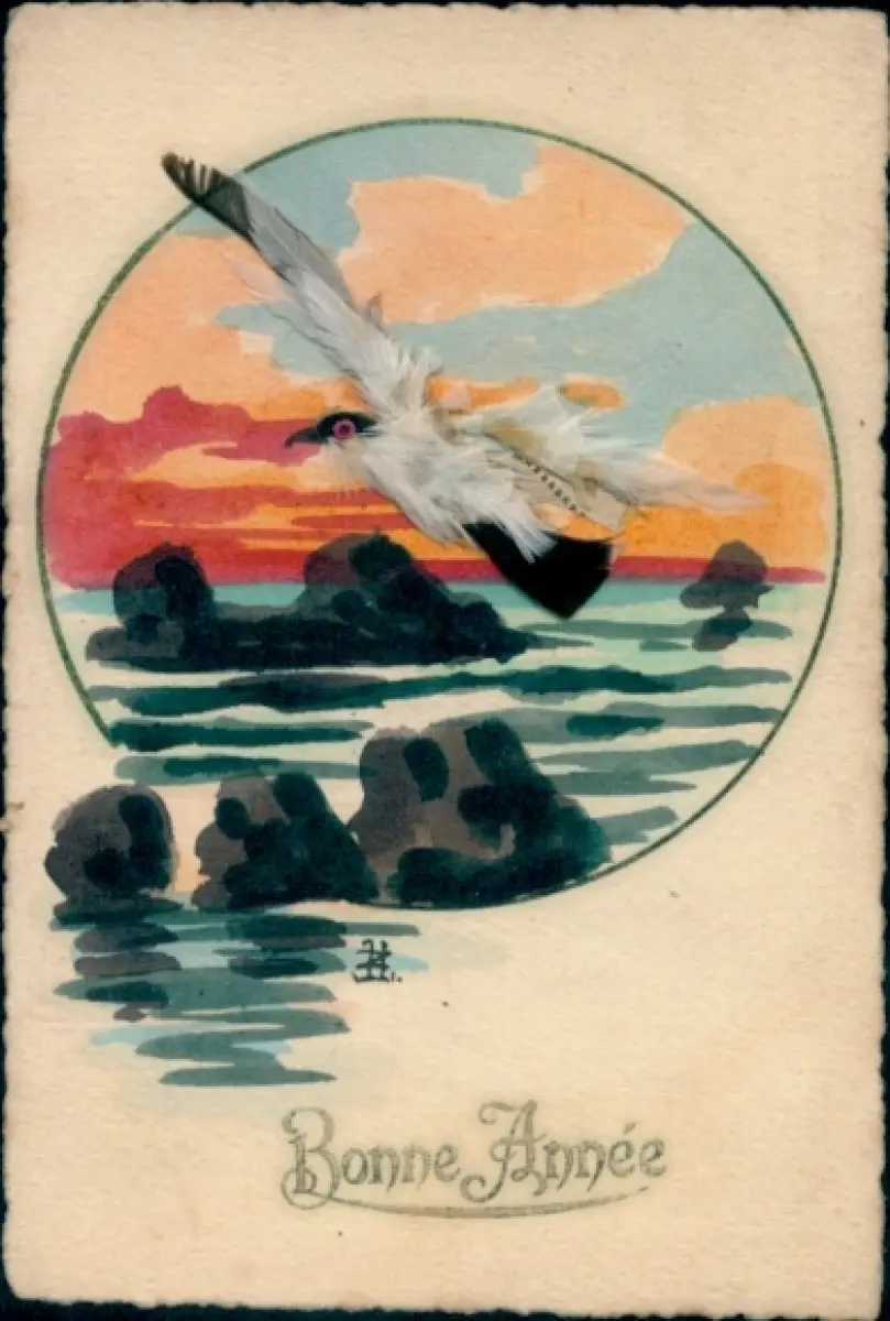 Material Ak Glückwunsch Neujahr, Möwe, Federn
