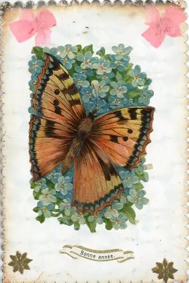 Material Ak Glückwunsch Neujahr, Schmetterling, Blumen, Stoffschleifen