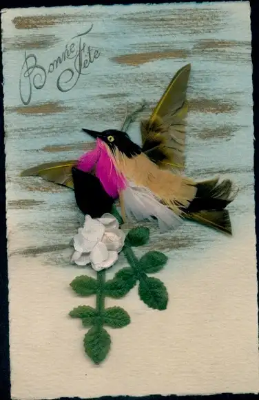 Material Ak Glückwunsch, Vogel, Echte Feder, Blume