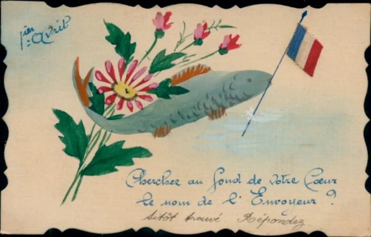 Material Ak Stofffahne, Blumen, Glückwunsch 1. April