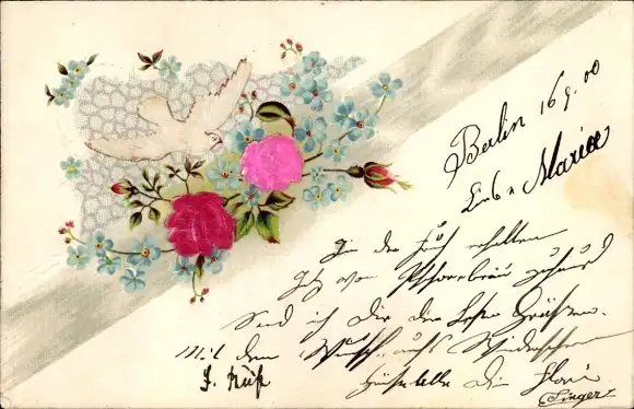 Material Ak Tauben, Blumen, Rosen, Vergissmeinnicht