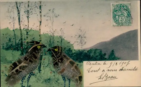 Material Ak Zwei Vögel, Echte Feder, Birken