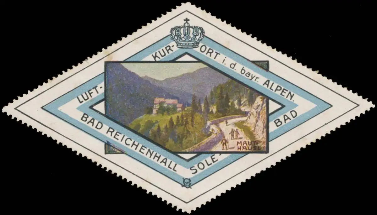 Solebad und Luftkurort in den bayrischen Alpen, Größe/Zustand: 6x12 , fleckig, Original alte Reklamemarke die seinerzeit für die Werbung benutzt wurde