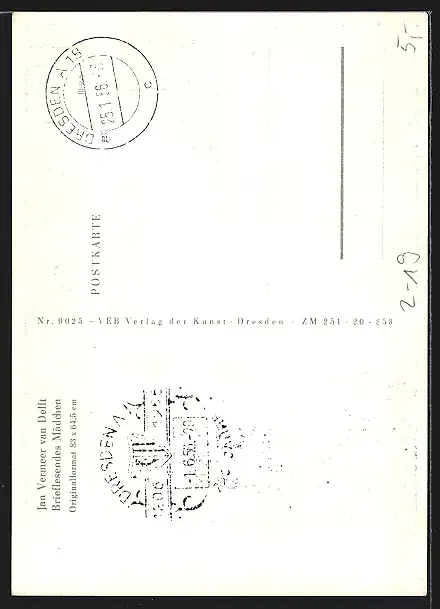 Maximum-AK Brieflesendes Mädchen, Jan Vermeer van Delft