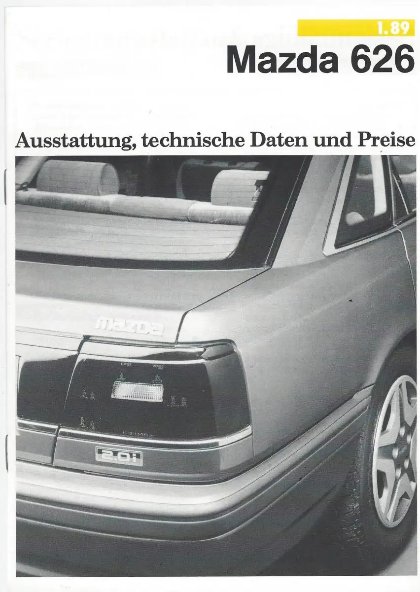 Mazda 626. Ausstattung, technische Daten und Preise. 1/1989. Prospekt.