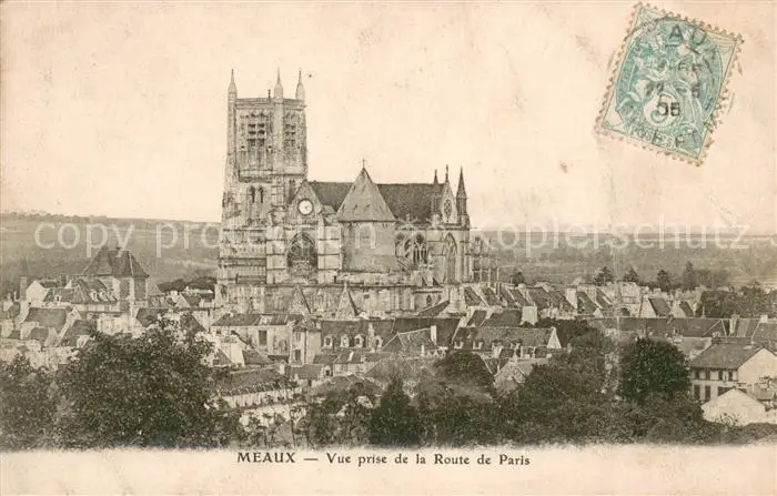 Meaux_77 Vue prise de la Route de Paris Eglise postalisch gelaufen 1905 Erhaltung siehe scans [FriedD77] Frierer