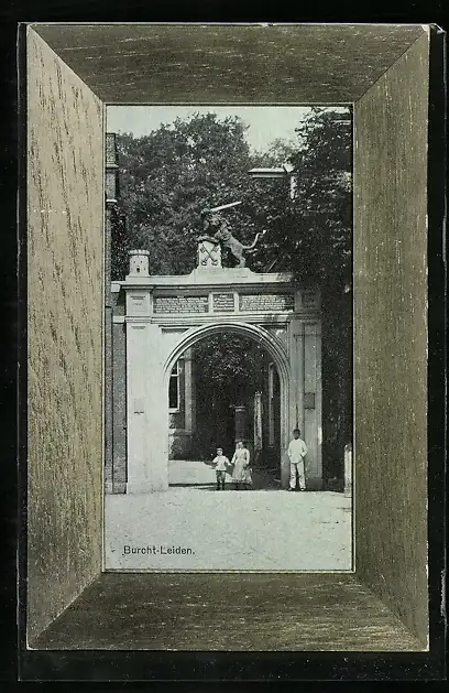 Mechanische-AK Burcht-Leiden, Tor mit Löwen-Skulptur
