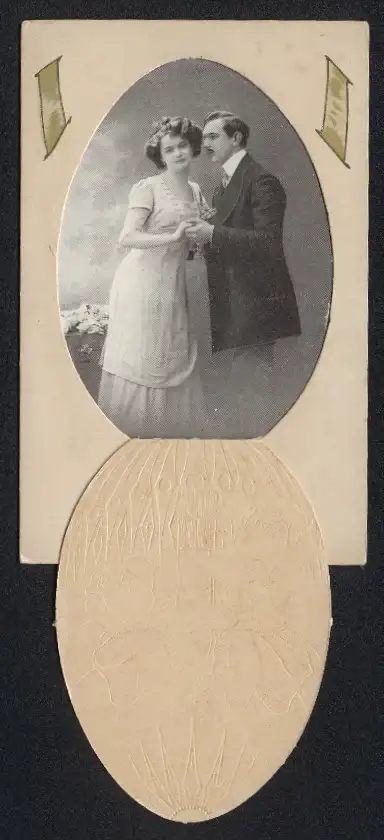 Mechanische-AK Osterei versteckt ein Liebespaar