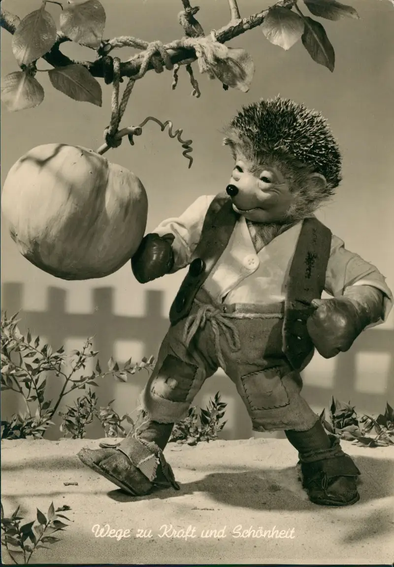 Mecki (Diehl-Film) boxt auf übergroßem Apfel Mecki als Boxer 1959