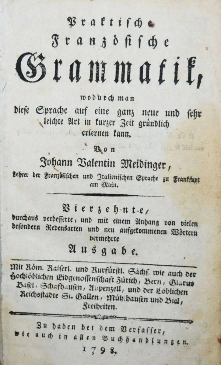 ausgehenden 18. Jahrhunderts. – Die franz. Grammatik des Frankfurter