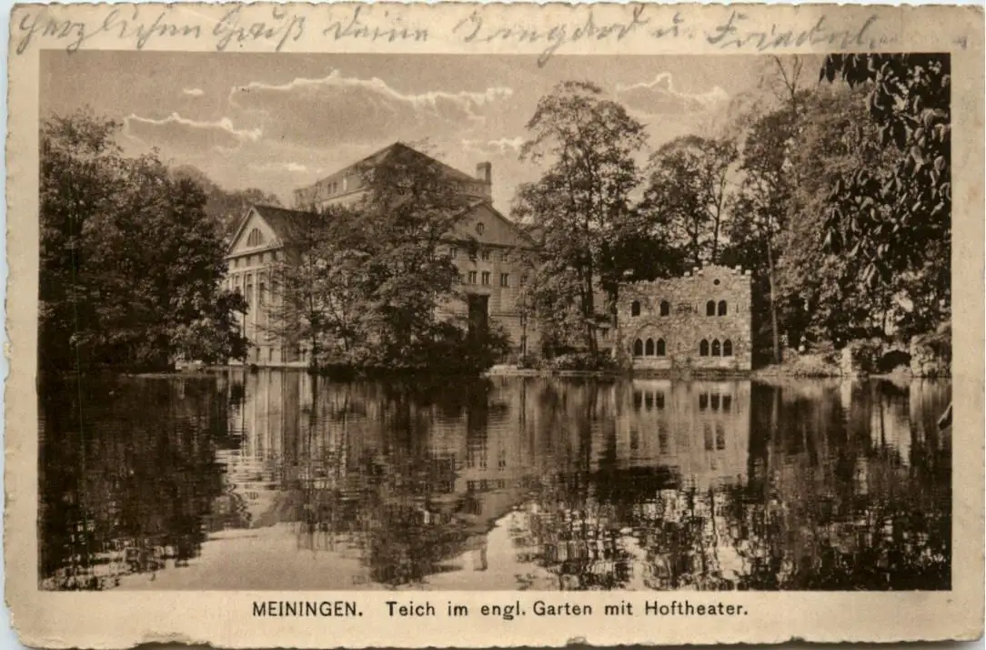 Meiningen, Teich im engl. Garten mit Hoftheater -370448