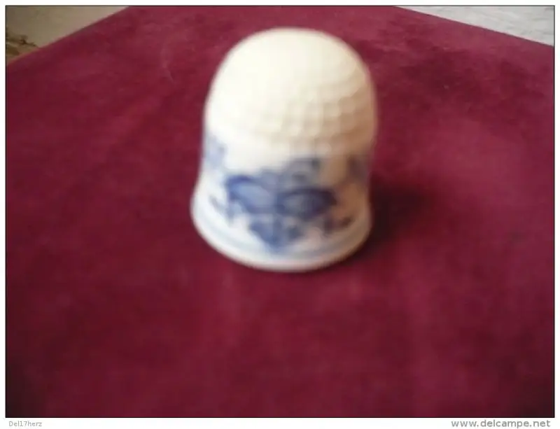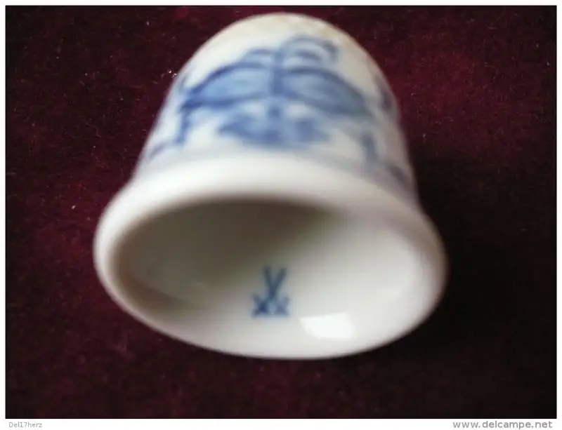 Der Fingerhut hat das berühmte Zwiebelmuster und ist innen mit den Schwertern gestempelt.