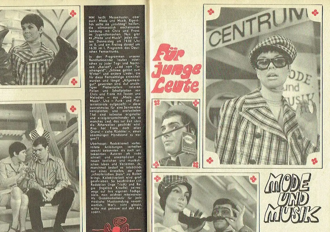 guter bis sehr guter Zustand, geringe Gebrauchs- und Alterungsspuren: Vorderseite ander unteren Ecke geknickt, DDR-Zeitschrift für Unterhaltungsmusik die Geschichte der Unterhaltungsmusik in der DDR und ihrer Begleiterscheinungen Schlager, Jazz, Beat, DDR-Rock, Musiktheorie, Musikpolitik, Neuerscheinungen bei Amiga, Hitparaden, Stars und Sternchen usw. hier in diesem Heft: Cocktail — Musik zur Unterhaltung, einst und jetzt — Mode und Musik (Chris Doerk und Frank Schöbel, 2 Seiten mit 5 Bildern) —  Kalinka — Wer vieles bringt ... (Das Estradenorchester des Bezirkes Neubrandenburg unter Leitung von Eberhard Hopp, 3 Seiten mit 2 Bildern) — Hoa bien heißt Frieden — Brigitte Ahrens (2 Seiten mit 5 Bildern) — Ernst Böhlmann (Komponist, 1,5 Seiten mit 1 Bild) — Noten und Text des Fasching-Liedes "Das Geld ist rund" von Günter Hansel — Konferenz zu Problemen des Laienbühnentanzes — Neue Bezeichnungen für Tonbänder — 3. Kursus im Studio — Die Instrumentation der modernen Tanz- und Jazzmusik (15) — Was man so hört, worüber man spricht (Mantovani, Ina Martell, Günter Fischer, Tilo Muller-Medek und Olivia Molina) — Werkstattgespräche — Briefwechsel wünschen — Anzeigen, Softcover, ca. 16 x 23, 32 Seiten mit zahlreichen Bildern
