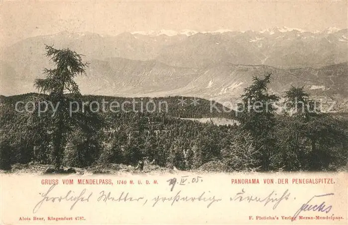 Mendelpass Penegalspitze Mendelpass postalisch gelaufen 1905 Erhaltung siehe scans [PaolaD17] PaolPID1