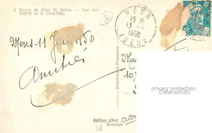 Mens Route de Pont de Brion Chatel Mens postalisch gelaufen 1950 Erhaltung siehe scans [LiesaD40] LiesID40