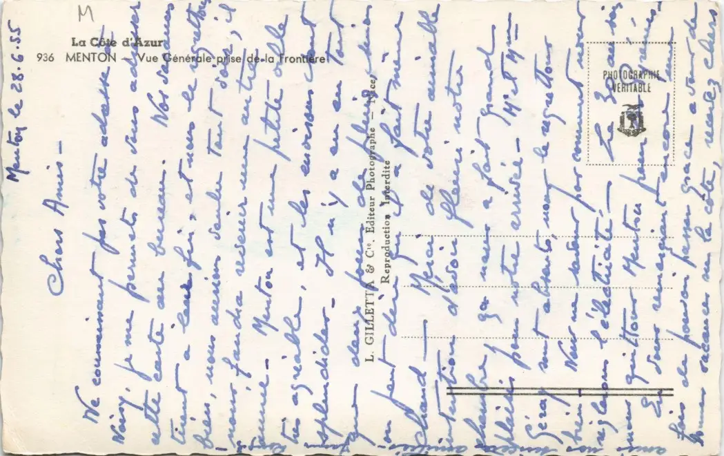 Menton Mentoun/ Mentone Vue La Cote d'Azur, Panorama Teilansicht 1955