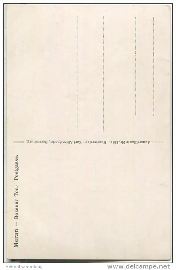 Meran - Bozener Tor - Postgasse - signiert J. Marschall - Verlag Karl Alber Specht Ravensburg (G37105) *