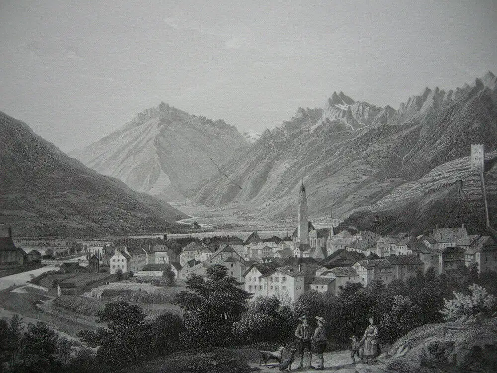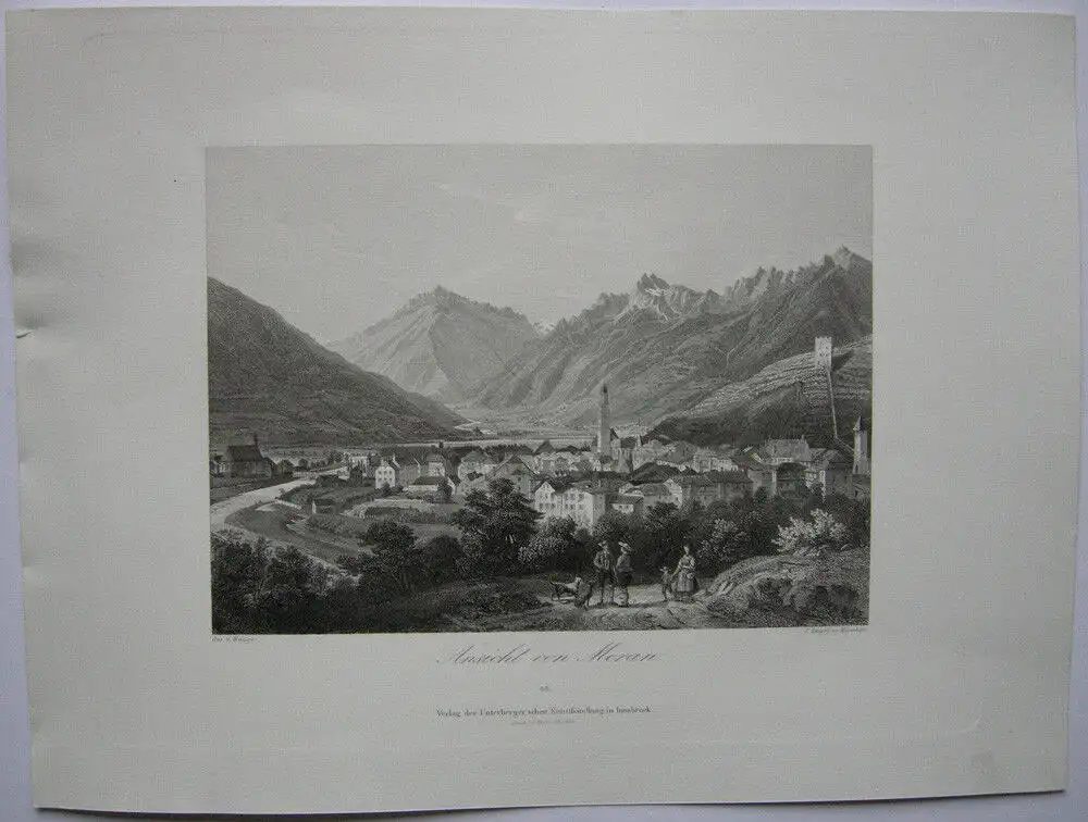 Meran Gesamtansicht Südtirol Trentino Italien Orig. Stahlstich 1840