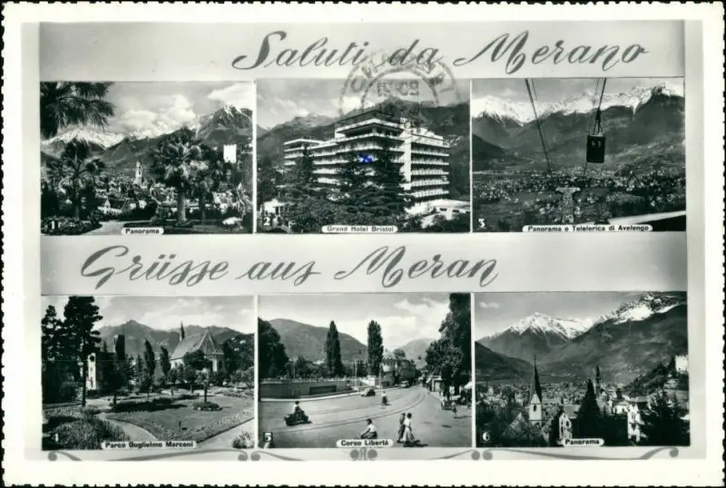 Meran Merano Panorama, Grand Hotel Bristol, Seilbahn, Corse Liberta 1957