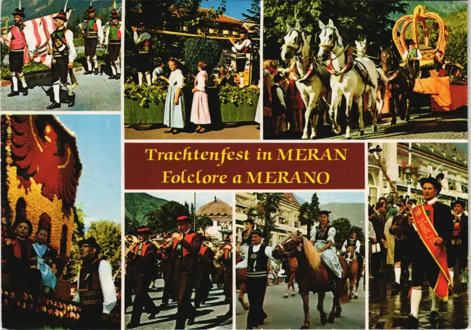 Meran Merano Trachtenfest Folclore Merano Mehrbild-AK 7 Foto-Ansichten 1990