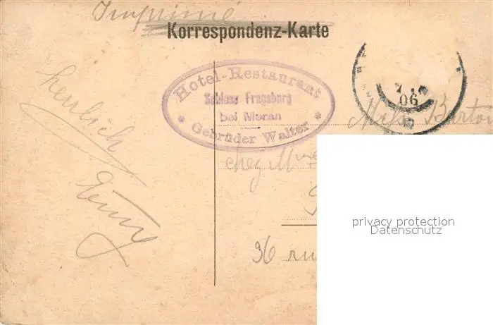 Meran_Merano Fragsburg Meran Merano postalisch gelaufen 1906 Erhaltung siehe scans [KathaD81] Kathoren