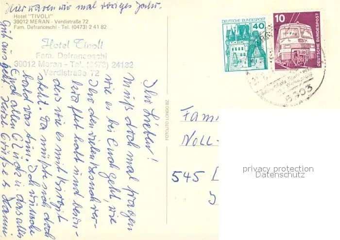 Meran_Merano Hotel Tivoli Meran Merano postalisch gelaufen nach 1965 Erhaltung siehe scans [WerneD78] WernPID7