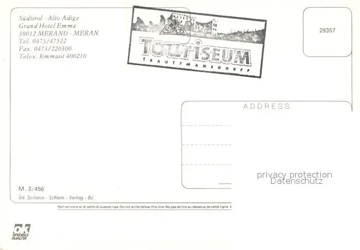 Merano_Suedtirol Grand Hotel Emma Merano Suedtirol postalisch nicht gelaufen nach 1965 Erhaltung siehe scans [WerneD78] WernPID7