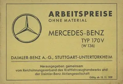Mercedes-Benz 170 V W 136 Arbeitspreise 11.1939