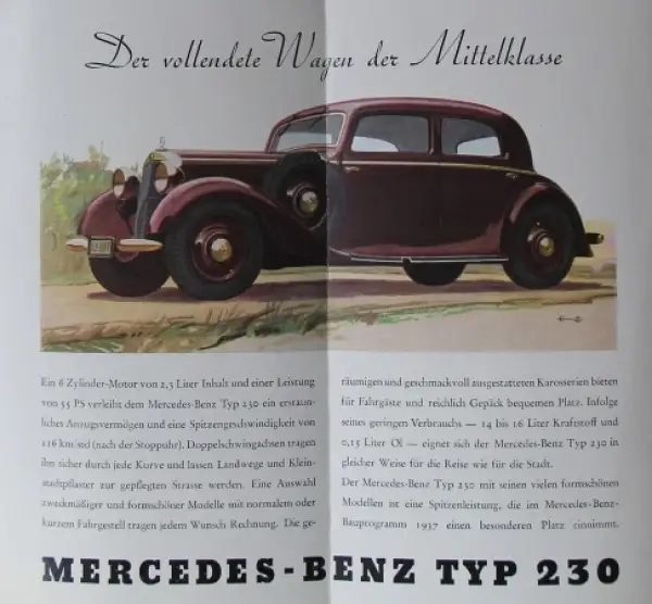 Mercedes-Benz 230 Modellprogramm 1937 Automobilprospekt (8918)