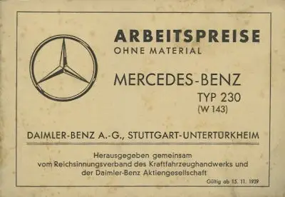Mercedes-Benz 230 W 143 Arbeitspreise 11.1939
