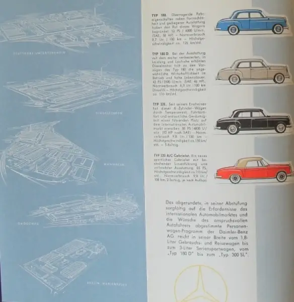 Mercedes-Benz Modellprogramm 1958 Automobilprospekt (8940)