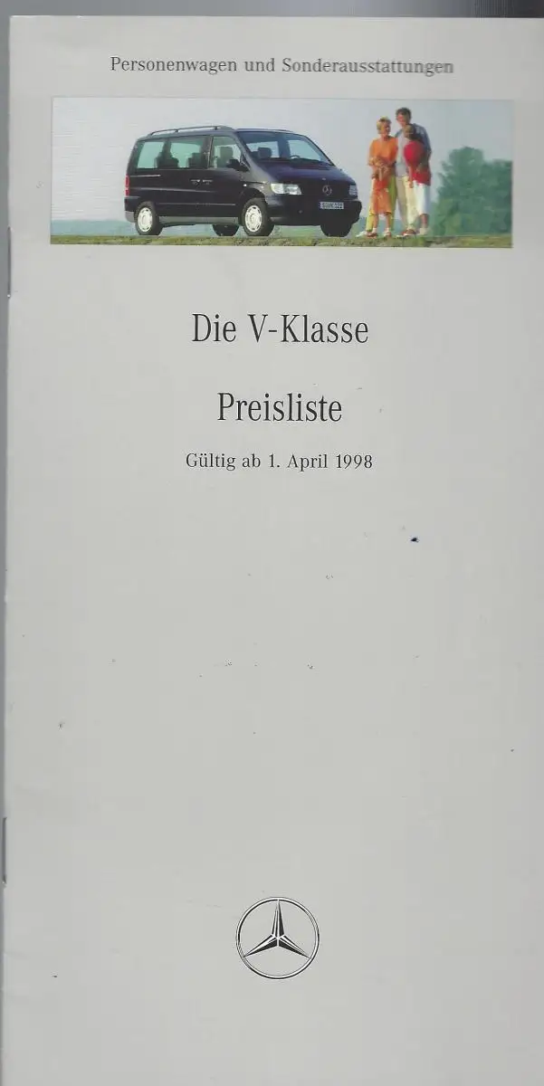 Titel: Mercedes Benz. Preisliste April 1998. Die V-Klasse. Personenwagen und Sonderausstattung.
