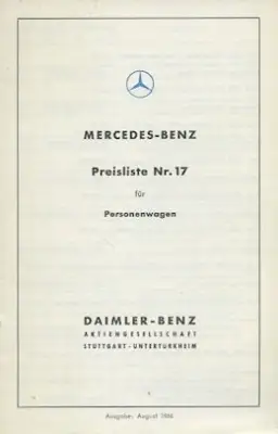 Mercedes-Benz Preisliste Nr. 17 8.1966