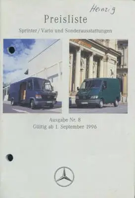Mercedes-Benz Sprinter Preisliste 9.1996