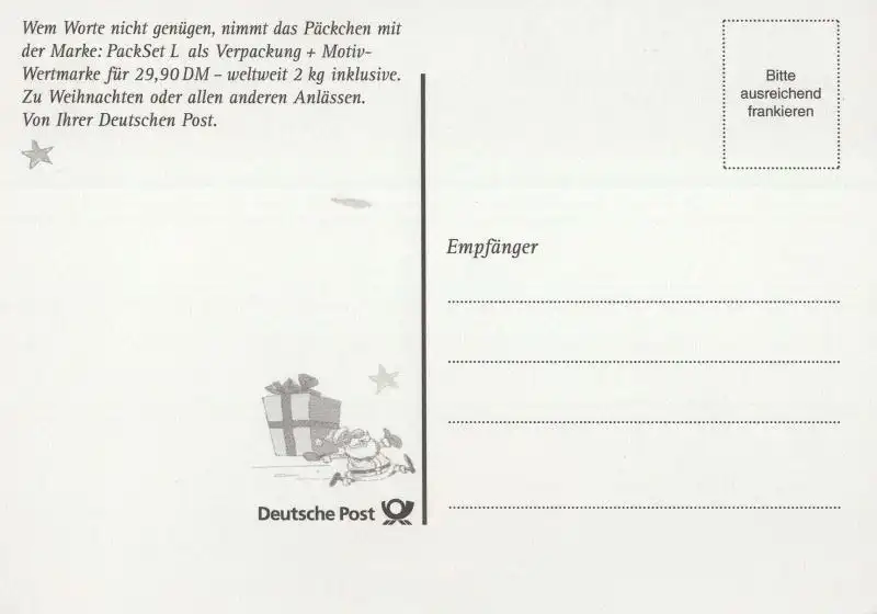 Ich hatte die Rechnung sofort als Vorkasse bezahlt, aber keine Zusendung der Karte erhalten. Trotz Nachfrage keine Rückmeldung bzw. Erklärung. Da es sich zum Glück nur um 1,70 € handelt, ist die Sache für mich erledigt, ärgerlich, aber zu verkraften. Mit den drei anderen Karten, die ich bestellt hatte, hat alles wunderbar geklappt.
