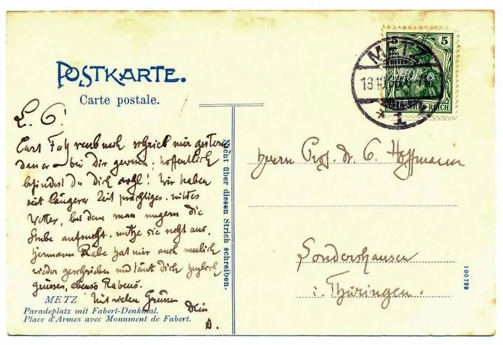 Metz Paradeplatz mit Fabert-Denkmal, gelaufen 13.10.1906
