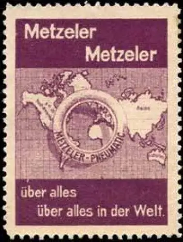 Metzeler Metzeler über alles über alles in der Welt - Pneumatic. Magentarot, Größe/Zustand: 4x3 , guter Zustand, Original alte Reklamemarke die seinerzeit für die Werbung benutzt wurde