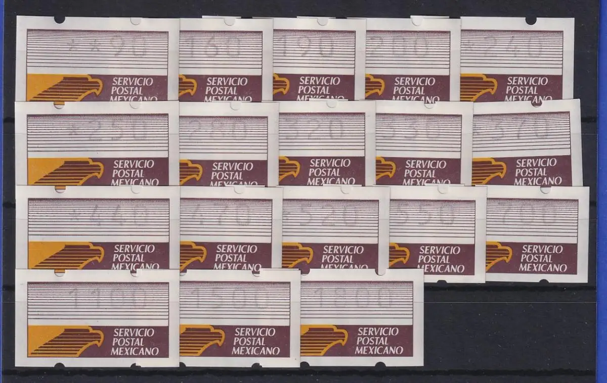Mexiko Klüssendorf-ATM 1. Ausgabe z-Pap. Satz 18 Werte 90 - 1800 **