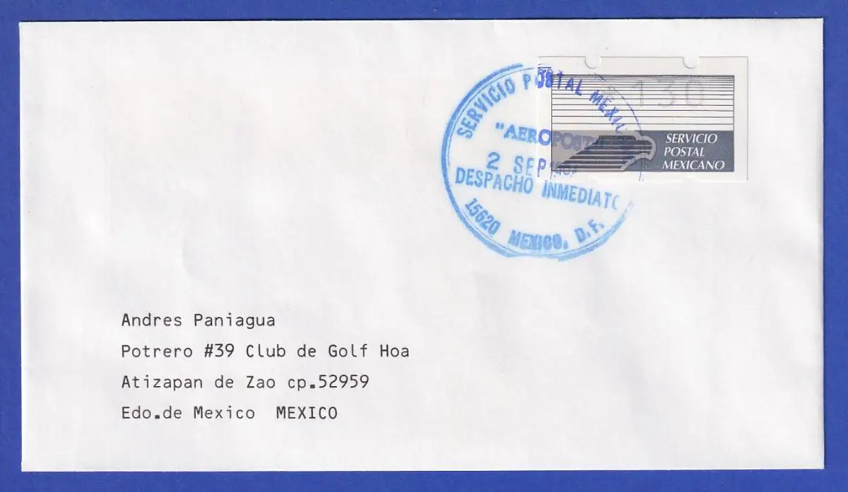 Mexiko Klüssendorf-ATM 2. Ausgabe Wert 130 auf Inlandsbrief 2.9.1994