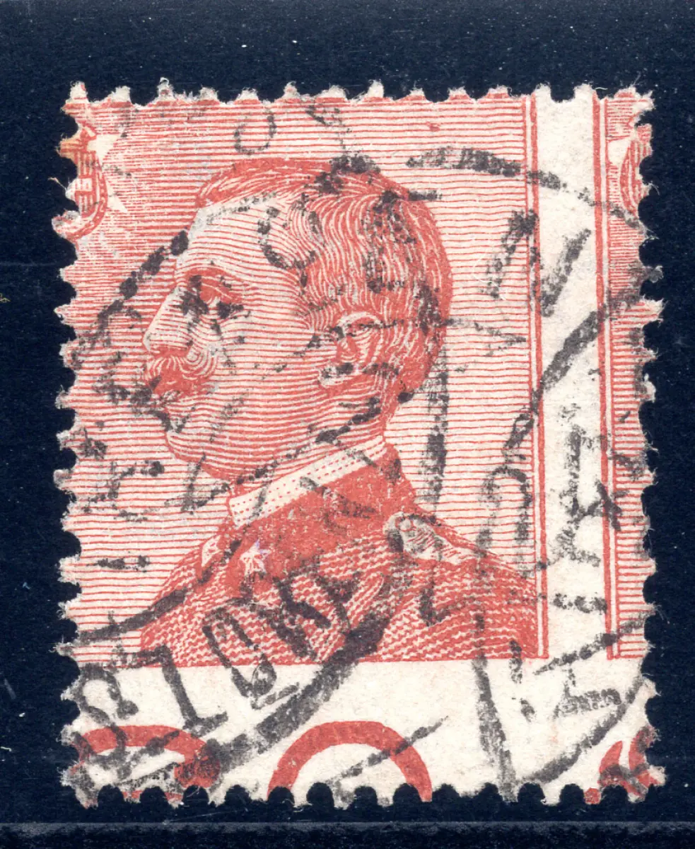 Michetti Cent. 30 Sorten in beide Richtungen verschobene Verzahnung Gebraucht - Michetti Cent. 30 Nr. 127 schönes Exemplar mit stark in beide Richtungen verschobener Verzahnung - gehört zur letzten Reihe des Blattes, daher ohne den Schriftzug Poste Italiane Cent. 30 und mit einem Teil der Randangaben in der Vignette - Unregelmäßige Verzahnung - Unveröffentlichter hochwertiger Code 247/11