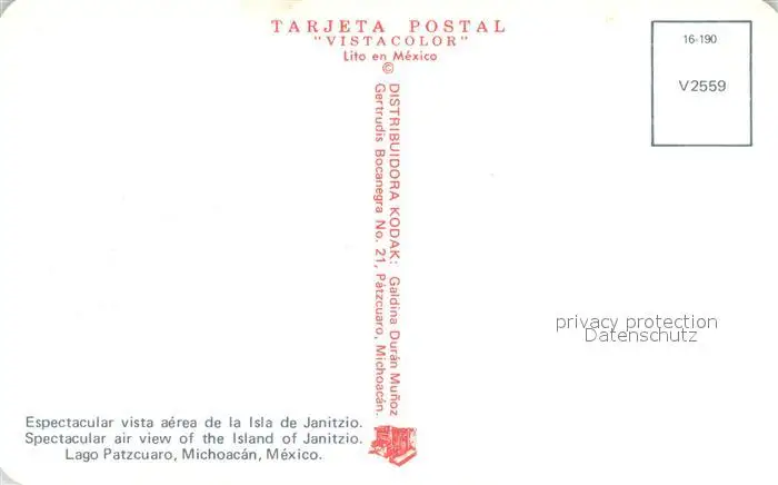 Michoacan Fliegeraufnahme Isla de Janitzio Michoacan postalisch nicht gelaufen nach 1965 Erhaltung siehe scans [LiesaD40] LiesID40