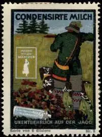 Condensirte Milch Marke Milchmädchen, Bild 5, Hund, Größe/Zustand: 5x4 , guter Zustand, Original alte Reklamemarke die seinerzeit für die Werbung benutzt wurde