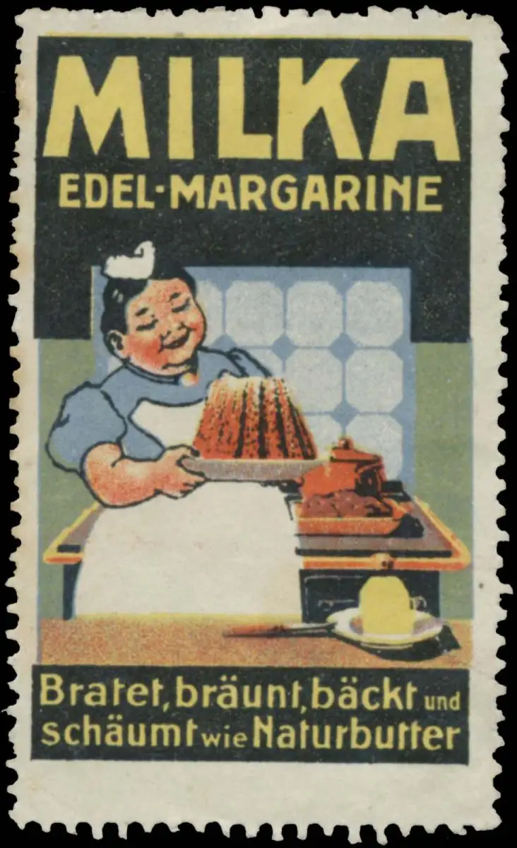 Bratet, bräunt, bäckt und schäumt wie Naturbutter, Größe/Zustand: 6x4 , guter Zustand, Original alte Reklamemarke die seinerzeit für die Werbung benutzt wurde