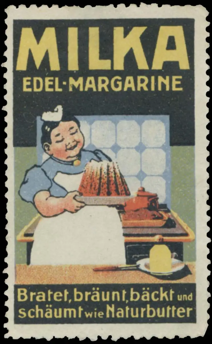 Bratet, bräunt, bäckt und schäumt wie Naturbutter, Größe/Zustand: 5x3 , guter Zustand, Original alte Reklamemarke die seinerzeit für die Werbung benutzt wurde