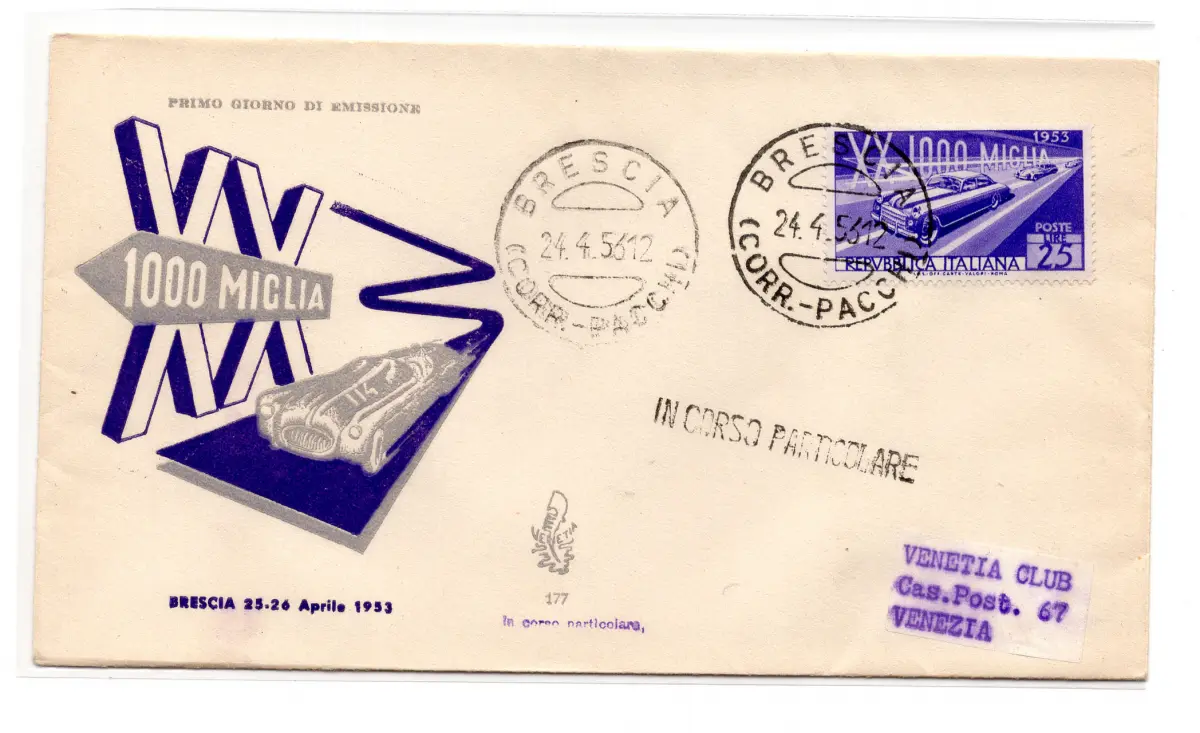 Umschlag - Mille Miglia Nr. 707 auf Umschlag nach Venedig ohne Ann. bei Ankunft - linearer Seite Im Einzelnen Cod. 493/17