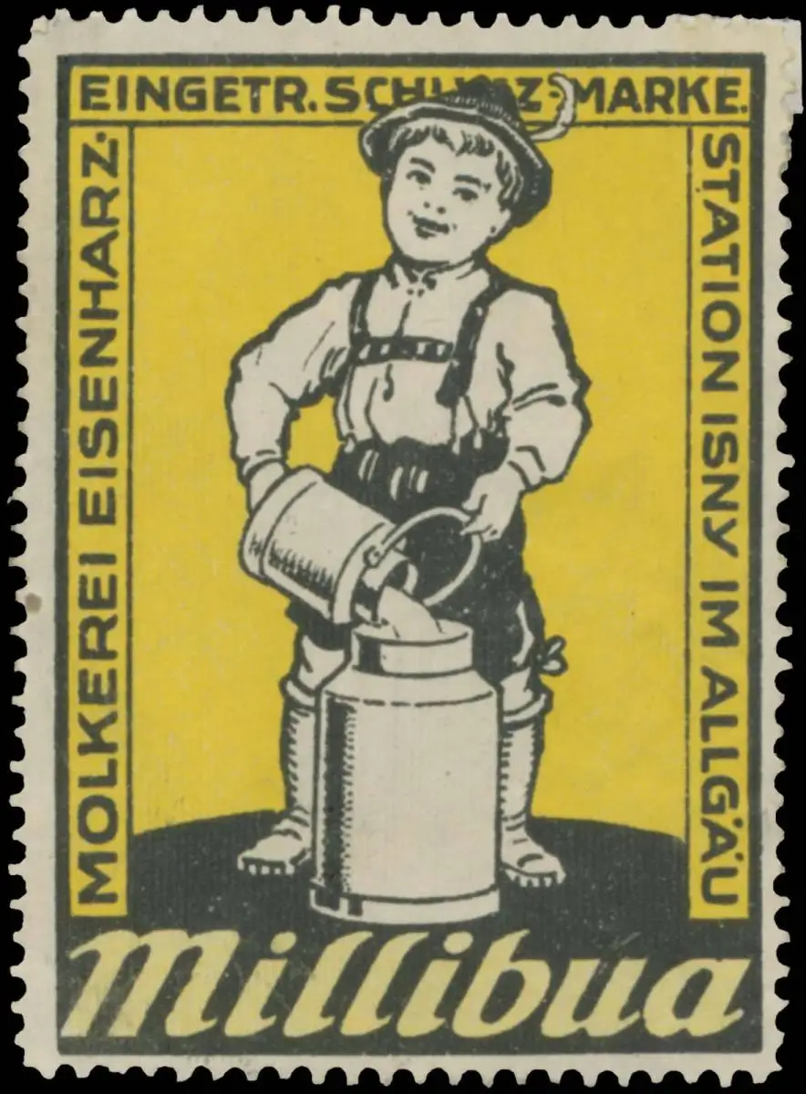 Milch, Käse, Allgäu, Größe/Zustand: 6x4 , guter Zustand, Original alte Reklamemarke die seinerzeit für die Werbung benutzt wurde