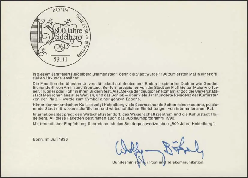 Ein Angebot in Briefmarken BRD Minister- & Sonderkarten - 956 weitere Angebote in dieser Kategorie