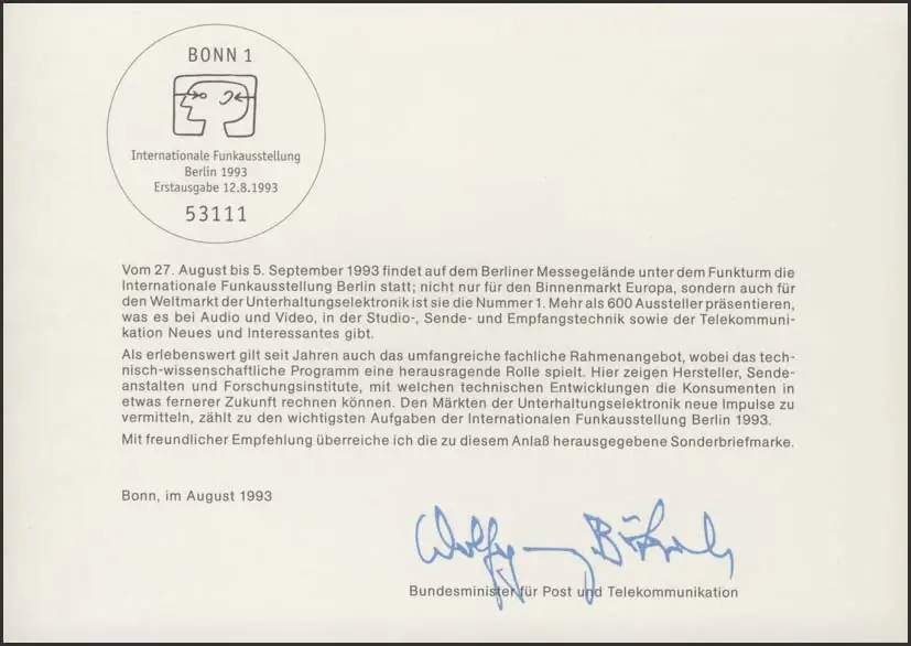 Ein Angebot in Briefmarken BRD Minister- & Sonderkarten - 956 weitere Angebote in dieser Kategorie