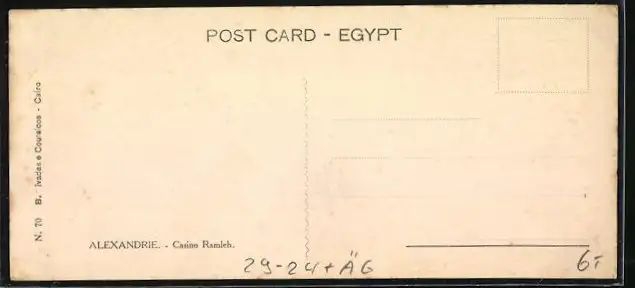 Personenbezogene Daten auf der Rückseite der Karte wurden durch blauen Textmarker unkenntlich gemacht. Die blauen Stellen sind auf die Vorderseite durchgeweicht und wirken sich negativ auf das Postkartenfoto aus